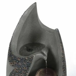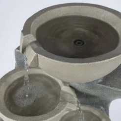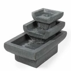 LuxenHome Gray Cement and Resin Modern 2-Tier Basin Outdoor Cascade Fountain with LED Lights