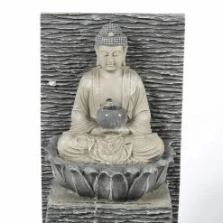 LuxenHome Polyresin Meditating Buddha with Pedestal Patio Cascade Fountain with LED Lights