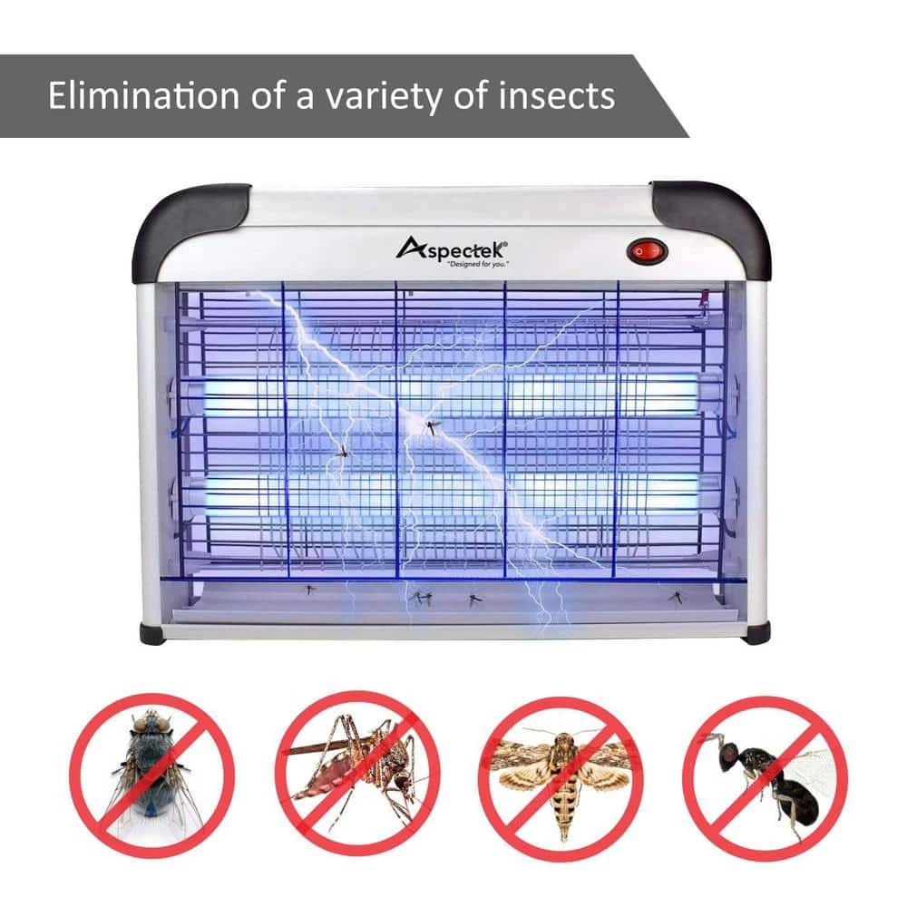 The 20-Watt Aspectek Indoor Electronic Insect Killer is a sure way to get rid of flying insects such as moths, flies and mosquitoes without using harmful chemicals. The electronic bug zapper attracts pests and instantly kills them upon contact with the grid. The device features a protective guard, so you are safe in the case of accidental contact. Insects are collected in a washable tray, making cleaning easy. Designed solely for indoor use.