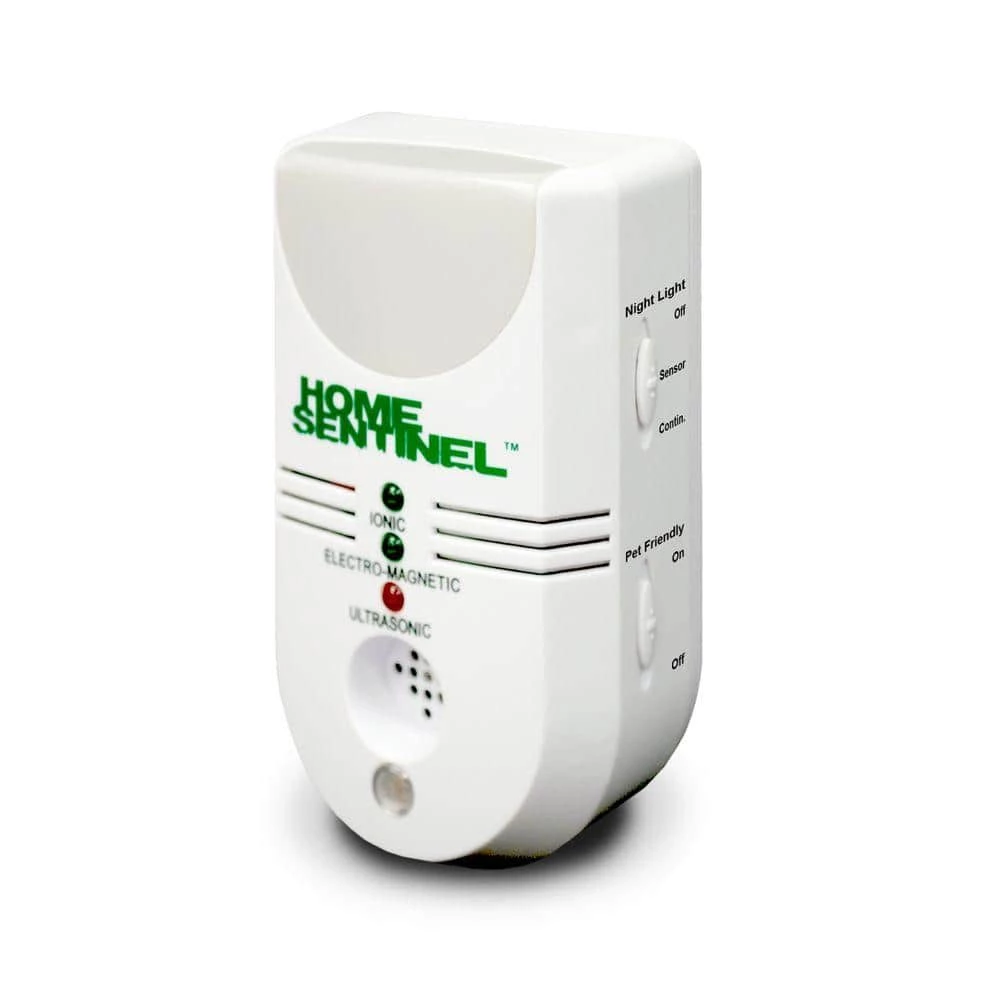 The Home Sentinel 5-in-1 Indoor Ultrasonic and Electromagnetic Pest Repellent by Aspectek helps control indoor pests. Its superior unit combines ultrasonic, electro-magnetic and ionic functions. The device will turn the wiring in your walls into a pest-repelling system by using electro-magnetic waves to repel animals from the wall and then repel them from the house with the powerful ultrasonic sound signals. The Home Sentinel unit includes air cleaner, effectively removing bacteria that attract unwanted pests. The unit also comes with a comforting night light with a power-saving light sensor function. Ideal for rodents, roaches, spiders, crickets, fleas, bed bugs, ants, flies, bees, silverfish, ticks and other indoor pests. The Home Sentinel unit eliminates the ongoing costs of spraying your home for pests and puts an end to those messy mouse trap clean-ups. It is safe for humans and pets with no dangerous chemicals.