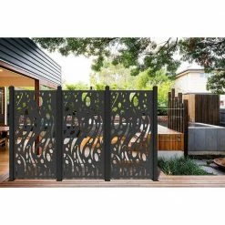 The product includes 3-pieces of 3 ft. x 6 ft. decorative composite privacy screen with 0.5 in.(1.2cm) thick, it can be used with our U-Channel Metal Slot Channels that allow for 3-pieces of 3 ft. x 6 ft. privacy fence setup. U shape metal slot channel provides a strong and long-lasting framework for your 6 ft. H horizontal fence project. METAL POLES and U Channel Slot are NOT Include. Attach 72 in. channels to the post with screw and slipping in regular 0.5 in. Decorative Composite Fence Panel into the channels (Please count the space of screw head for the spacing between poles). Once completed the result is a warm and fully private, contemporary, privacy fence with strength and endurance. Landscape designers turn to these panels when looking to elevate projects, add decorative accents or give any outdoor dining area a punch of style. Conceal trash bins, pool or A/C equipment, unsightly objects. Ideal for interior and exterior applications to enhance your home or project. Rotate horizontally and use as deck railing for added symmetry to your outdoor space.