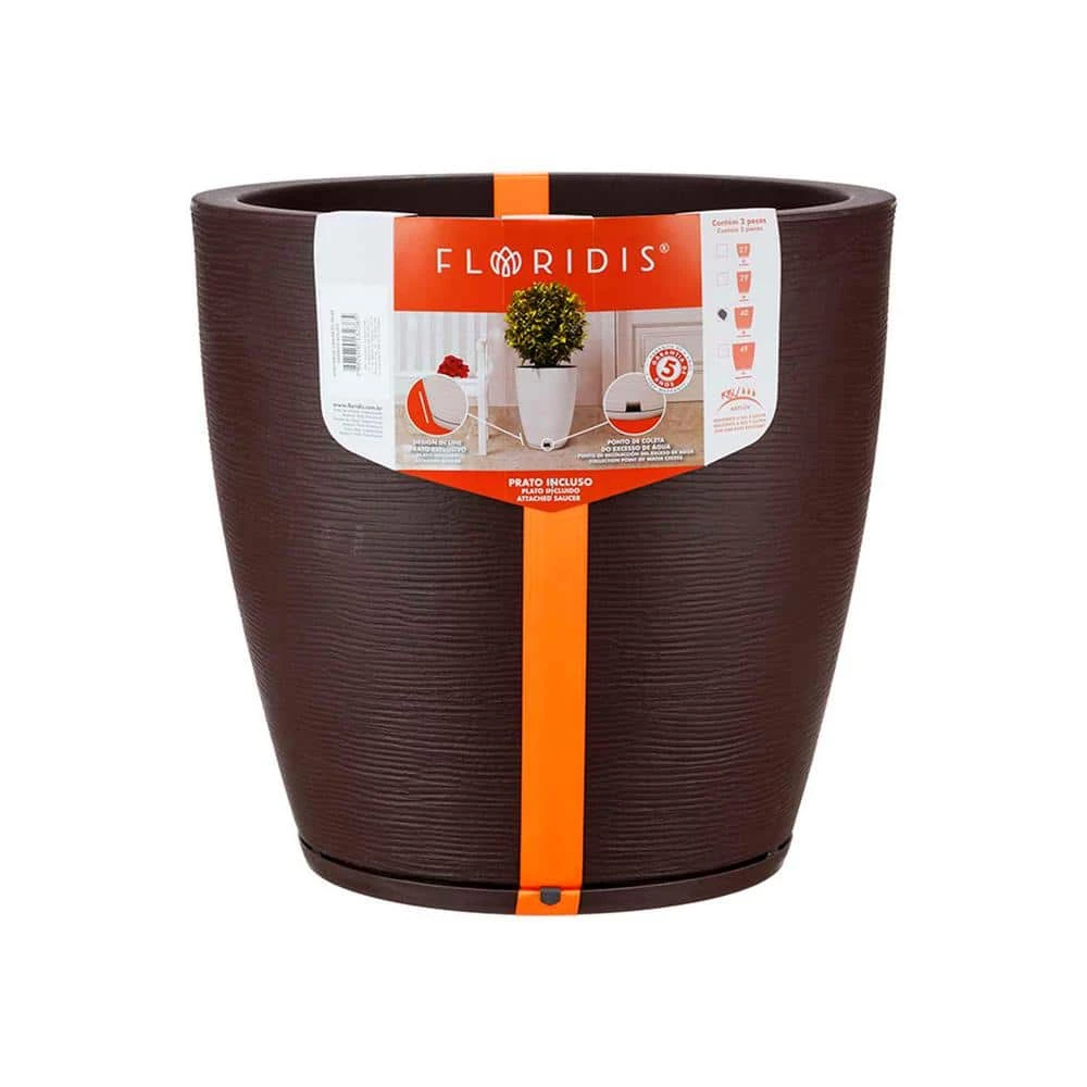 Plastic vase with saucer included and packed with a beautiful satin ribbon, which makes it an excellent gift option. Made of lightweight, super resistant and 100% recyclable material. Contains anti-UV protection does not fade. Resistant to sun, rain and low temperatures. Discreet collector of excess water. FLORIDIS vases are ideal for indoor and outdoor, and combine design with functionality.