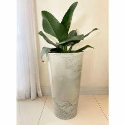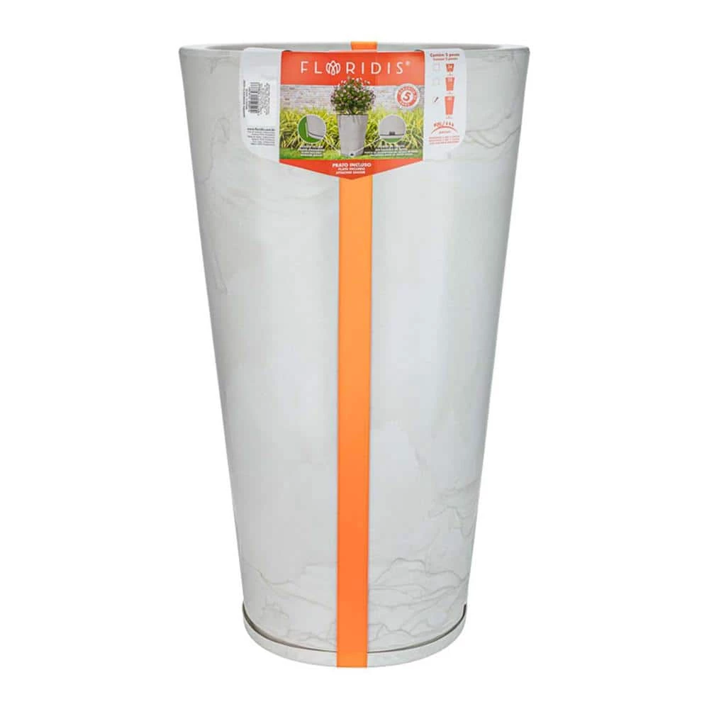 Plastic vase with saucer included and packed with a beautiful satin ribbon, which makes it an excellent gift option. Made of lightweight, super resistant and 100% recyclable material. Contains anti-UV protection does not fade. Resistant to sun, rain and low temperatures. Discreet collector of excess water. FLORIDIS vases are ideal for indoor and outdoor, and combine design with functionality.