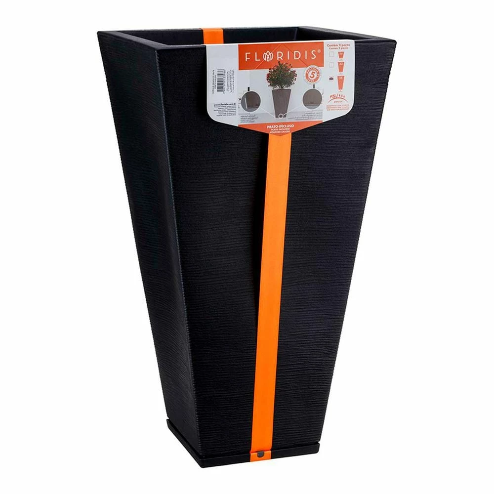 Plastic vase with saucer included and packed with a beautiful satin ribbon, which makes it an excellent gift option. Made of lightweight, super resistant and 100% recyclable material. Contains anti-UV protection does not fade. Resistant to sun, rain and low temperatures. Discreet collector of excess water. FLORIDIS vases are ideal for indoor and outdoor, and combine design with functionality.
