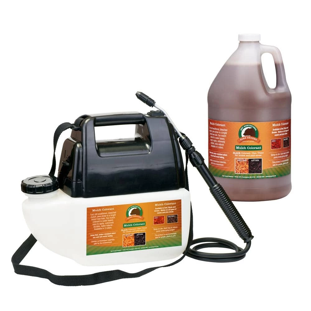 Just Scentsational’s Battery powered sprayer with 1 gal. Brown Bark Mulch Colorant is a permanent dye which restores color of old faded mulch. This ready to use colorant for mulch turns old weathered and bleached mulch to a bright brand new look. It’s water-based, easy to apply, extremely durable, looks natural. It works very well as a permanent colorant on both natural and rubber based mulch. Easily apply with most spray equipments. Product can stain concrete and other hard surfaces when dry, please use drop cloths and measures to prevent unwanted over-spray. One gal. will cover 300 sq. ft.