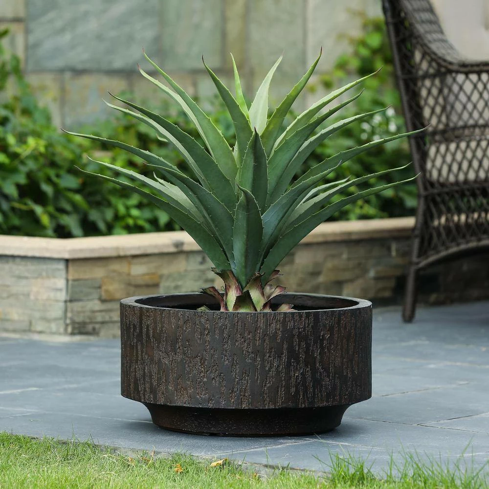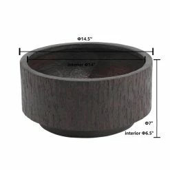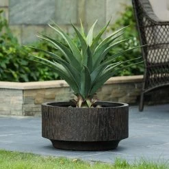 This textured, round pot planter is made of durable fiberclay, and is suitable for year round use outdoors in your garden, patio, or porch. With its modern-style vertical etched lines, and textured body, the planter will make a warm ambiance to your indoors as well. The planter includes a drainage hole.