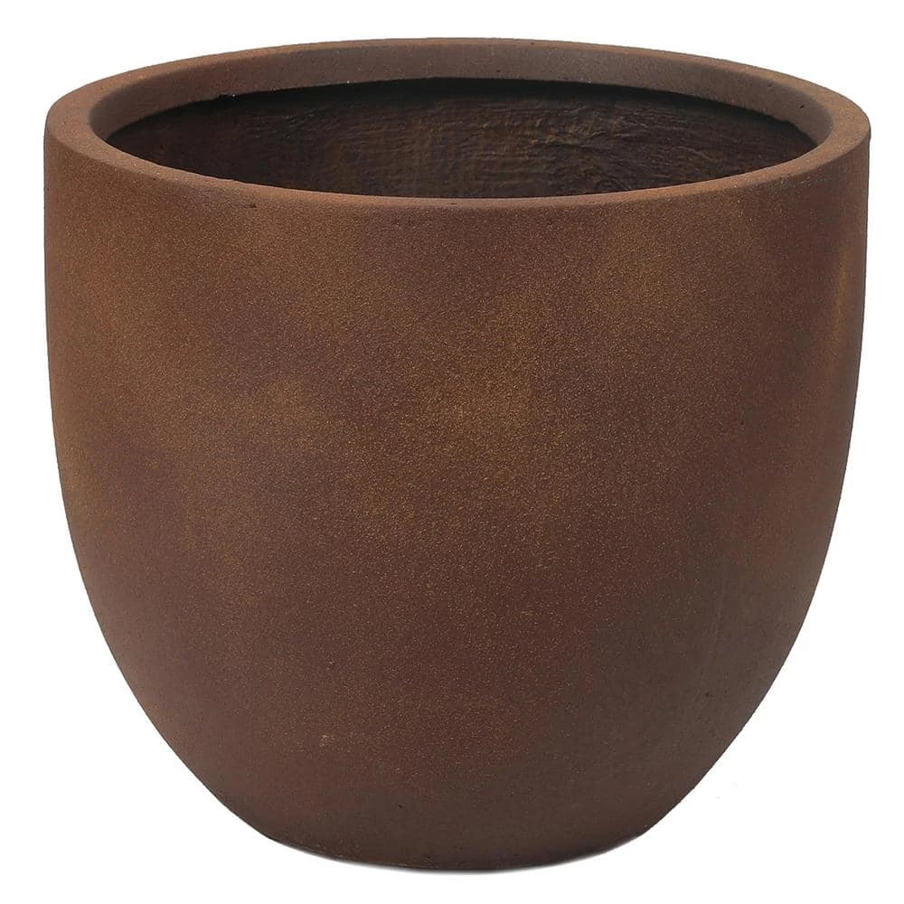 This smooth, rusty brown finish, round pot planter is made of magnesium oxide, also called magnesia and is suitable for year round use outdoors in your garden, patio or porch. with its beautifully smooth finish, the round planter will make a warm addition to your indoors as well. The planter weighs only 8.8 lbs. making it easy to move your planters from indoors to outdoors as needed. The planter includes a drainage hole.