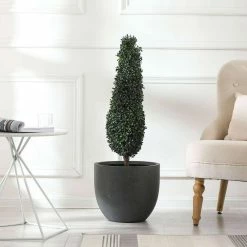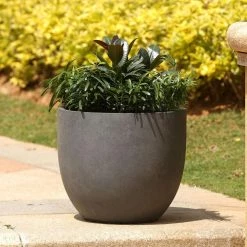 This smooth, stone finish, round pot planter is made of durable fiberclay, and is suitable for year round use outdoors in your garden, patio, or porch. With its beautifully smooth finish, the round planter will make a warm ambiance to your indoors as well. The planter weighs only 8.8 lbs. making it easy to move your planters from indoors to outdoors as needed. The planter includes a drainage hole.