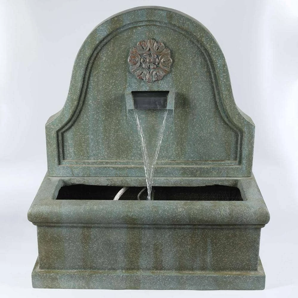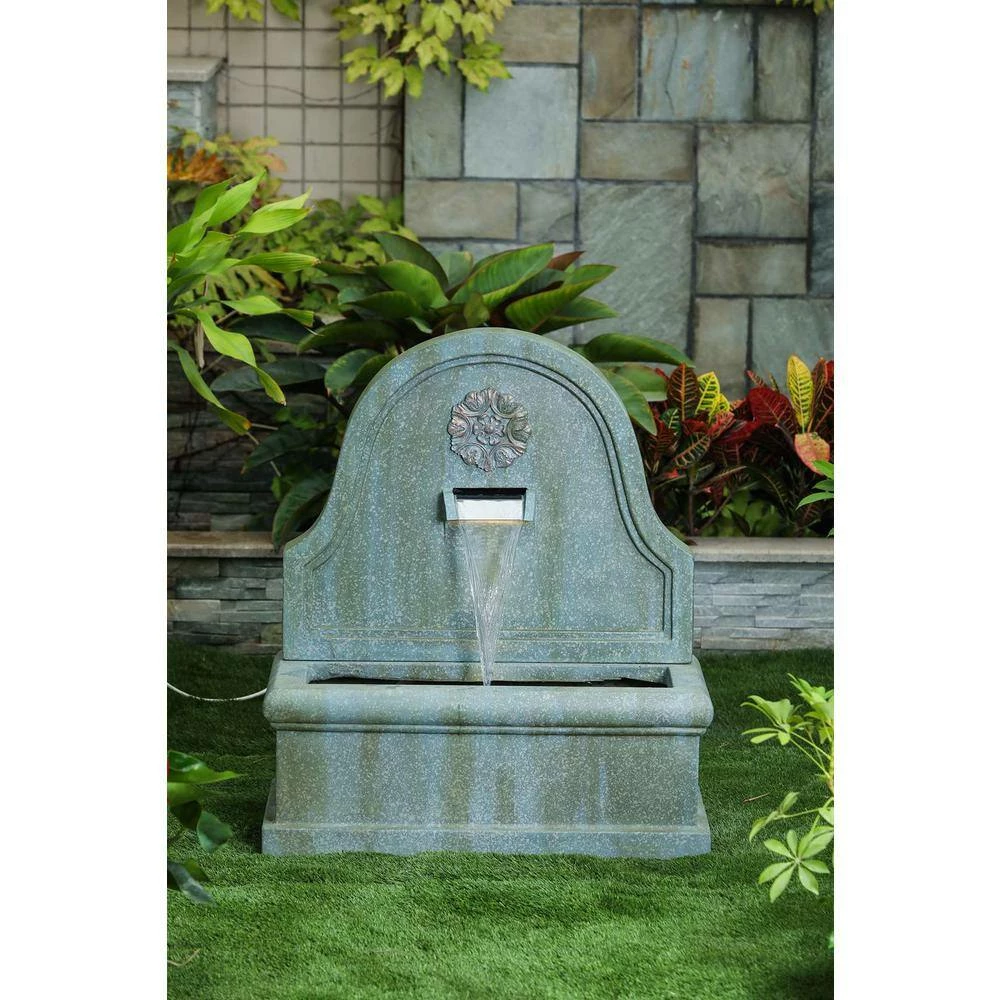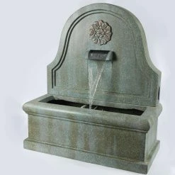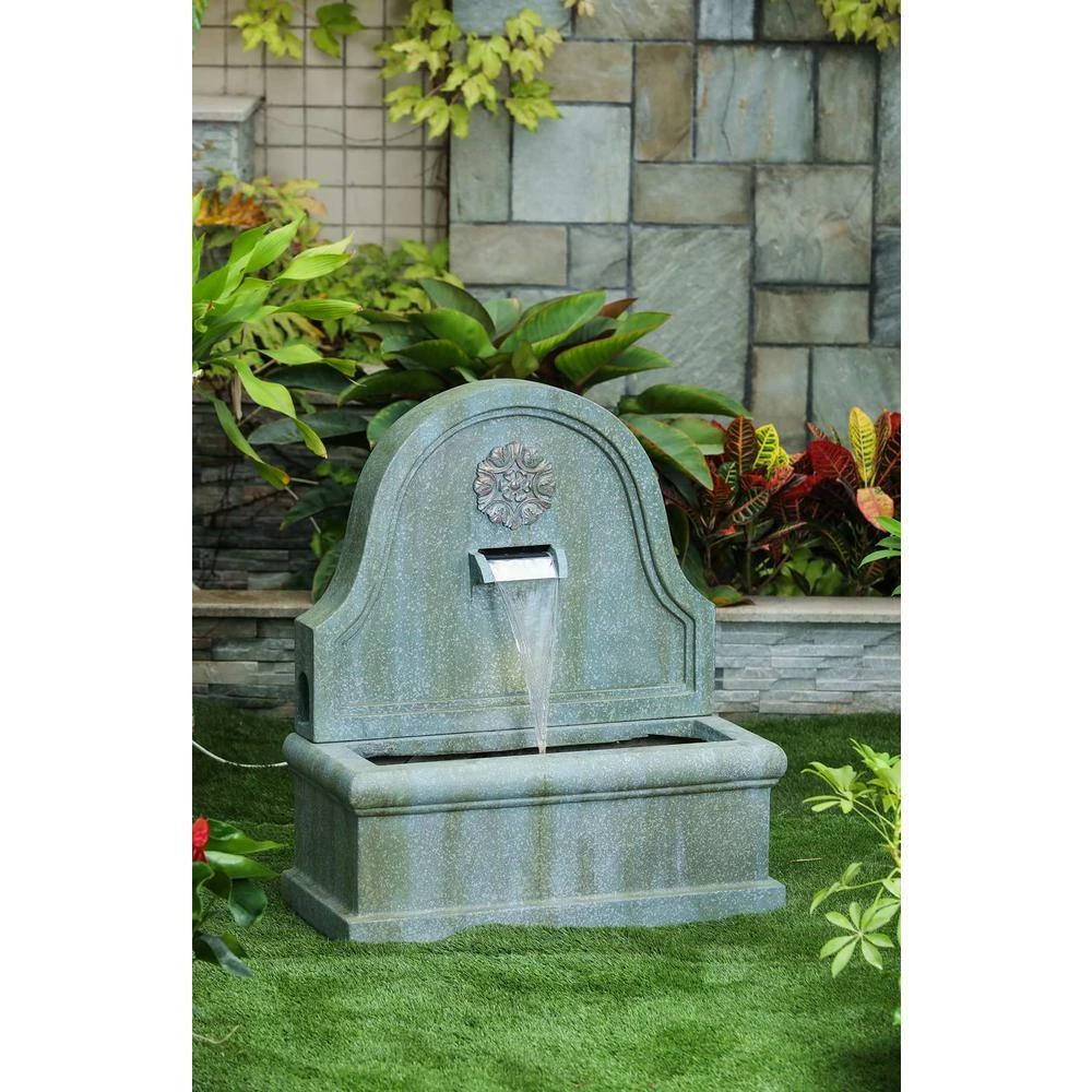 Carrying a strong silhouette, this outdoor modern stone finish fountain is gorgeous in its arched top and fountain base. Made of polyresin, this fountain is perfect for outdoors. The fountain has a decorative arched top that cascades water into the wide rectangular base. The sound and sight of bubbling water is sure to help tie the serene garden together. Electric pump is included.