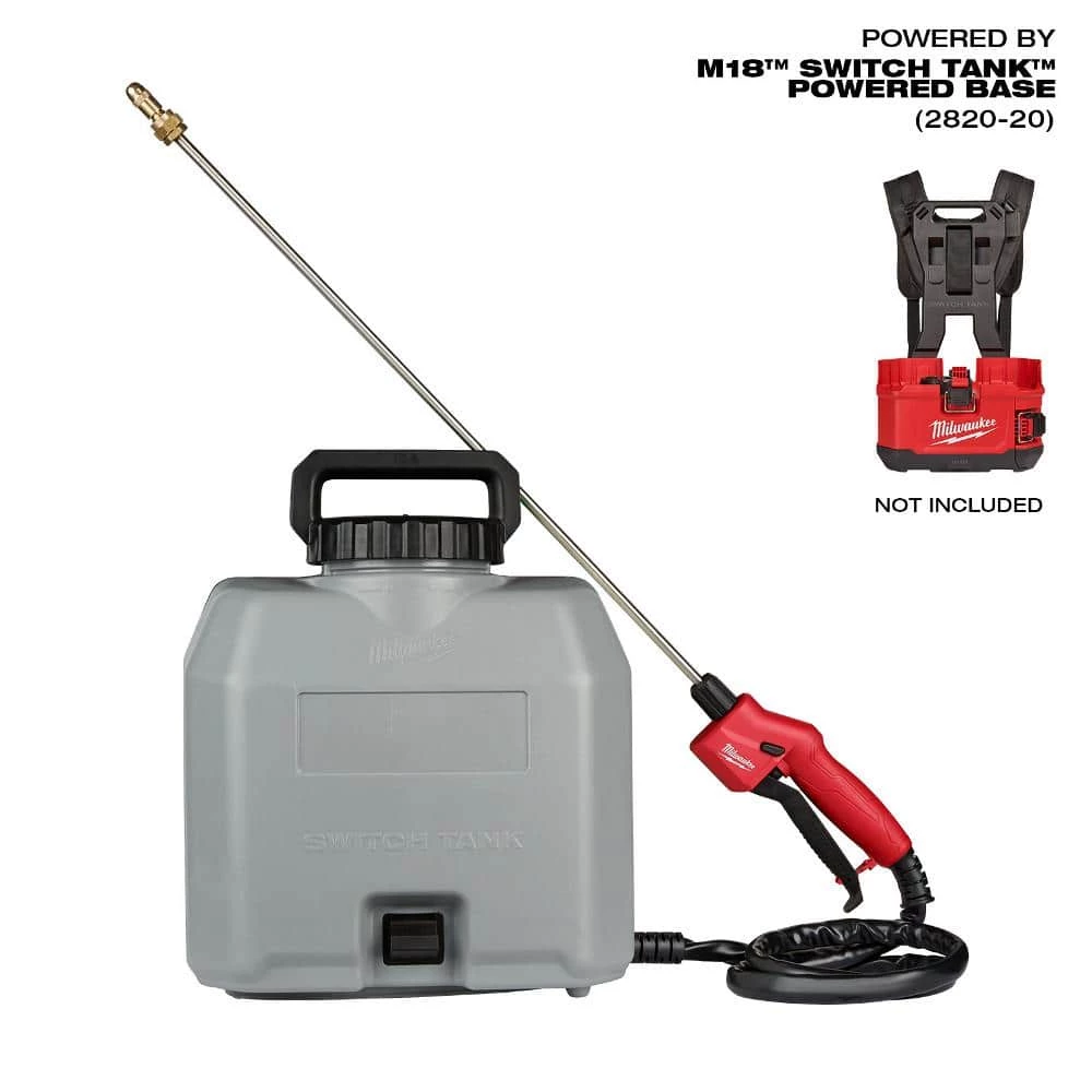 The Milwaukee SWITCH TANK 4 Gal. Concrete Sprayer Tank Assembly is an interchangeable tank powered by the M18 SWITCH TANK Powered Base (not included). The concrete sprayer tank assembly includes the pump, hose, and wand. The design allows users to add on tank assemblies for different applications, eliminating cross-chemical contamination. It also provides users with the ability to replace the tank assembly at a lower cost of ownership compared to replacing an entire sprayer. The 4 Gal. Concrete Sprayer Tank Assembly features a dual diaphragm pump for longer pump life and Viton seals for increased durability against harsh chemicals. The concrete sprayer tank also has a wide mouth opening for easier pouring and a strainer that filters debris from getting into the tank. This kit includes: 2 SWITCH TANK 4 Gal. Concrete Sprayer Tank Assembly, 2 Stainless Steel Wand, Adjustable Nozzle, 2 Fan Nozzle, 2 Angled Nozzle Adaptor.