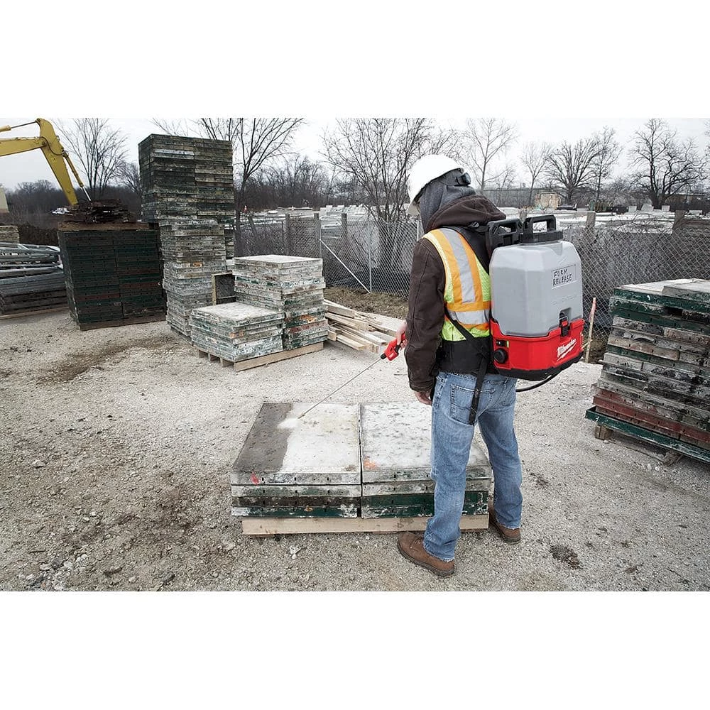 The Milwaukee M18 SWITCH TANK 4 Gal. Backpack Concrete Sprayer kit delivers the industry’s first interchangeable tank design with no manual pumping. Designed to meet the needs of concrete contractors, the battery-powered concrete sprayer delivers instant, constant and adjustable pressure up to 120 psi and a 25 ft. spray distance. The M18 REDLITHIUM XC3.0 Battery provides users with up to 12 tanks of spraying per charge. The 4 Gal. Concrete Sprayer Tank Assembly features a dual diaphragm pump for longer pump life and Viton seals for increased durability against harsh chemicals. The tank also has a wide mouth opening for easier pouring and a strainer that filters debris from getting into the tank. The backpack frame includes wide straps providing users with added comfort during extended spraying applications and a handle for convenient transport and storage. The isolated pump, hose and wand design allows users to add on tank assemblies for different applications, eliminating cross-chemical contamination. The Milwaukee Performance Safety Glasses with Gaskets provide Advanced Protection with Ultimate Performance. The safety glasses feature a removeable gasket that protects the user’s eyes against debris. This kit includes: M18 SWITCH TANK Powered Base, SWITCH TANK 4 Gal. Concrete Sprayer Tank Assembly, Stainless Steel Wand, Adjustable Nozzle, Fan Nozzle, Angled Nozzle, M18 REDLITHIUM XC3.0 Battery, M18/M12 Multi-Voltage Charger, Polarized Performance Safety Glasses with Gasket.