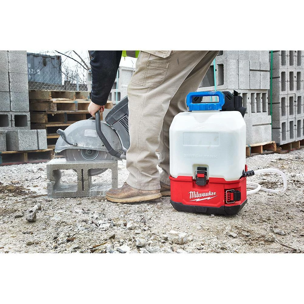 - Includes: M18 SWITCH TANK powered base, SWITCH TANK 4 Gal. water supply tank assembly, 10 ft. hose with quick-connect, water spray nozzle with quick-connect, M18 REDLITHIUM XC3.0 battery, M18/M12 multi-voltage charger, and 1 performance safety glasses with gasket 48-73-2040