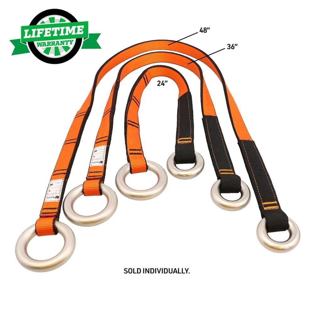 The Notch Friction Savers are constructed from multi layered, fray resistant, custom Nylon webbing. Install and retrieve from the ground. Reduces friction during ascent and suitable for use as a false crotch. Prevents damage to tree and climbing line with bright coloration for ease of visibility. Dense, multi layered webbing weave resists twisting. 23KN product rating. Meets ANSI Z133 standard. Available in 3 lengths: 24 in., 36 in. and 48 in. Ring sizes measure: 3 in. (Large) and 2.25 in. (Small).