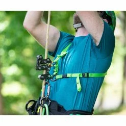 - Adjustable chest harness for SRS climbing with multiple attachment points on the sternum
