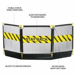 This heavy-duty durable debris containment barrier is a great solution for controlling debris such as chips while grinding stumps and chipping brush. The 3-panel system is constructed of a rigid powder-coated 0.88 in. steel frame for extended durability and easy transportation with added stability control for windy conditions. Each panel is covered with heavy-duty nylon reinforced coarse mesh (30% thicker than competitor’s versions) featuring an extended fabric apron. Rods are contained inside water resistant fabric pockets without the use of snaps or fasteners Panel connectors can be easily disconnected for expansion with additional panels. Rounded connectors allow panels to adjust individually to variable surface level conditions.