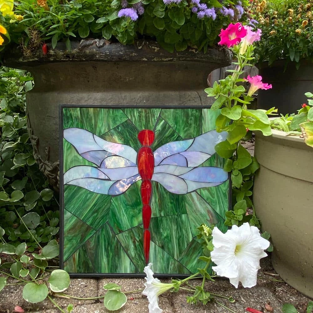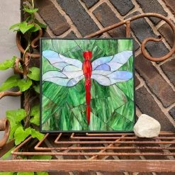 Create a garden pathway or accent your garden with the Outdoor Essentials Dragonfly Stepping Stone. This stepping stone is strong, lightweight and weatherproof – perfect for the DIY landscaper. The colorful Dragonfly design features individual hand-cut glass tiles and adds color to your garden or landscape bed.