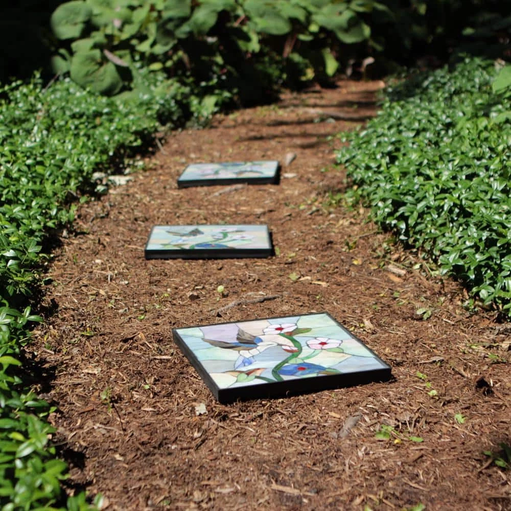 Create and add color to your landscape with our Outdoor Essentials® 12 in. x 12 in. Hummingbird Stepping Stone. This decorative garden stone is strong, lightweight and weatherproof; perfect for the DIY landscaper. The tranquil Hummingbird design is a collection of individual hand-cut glass tiles. Each one is sold separately.