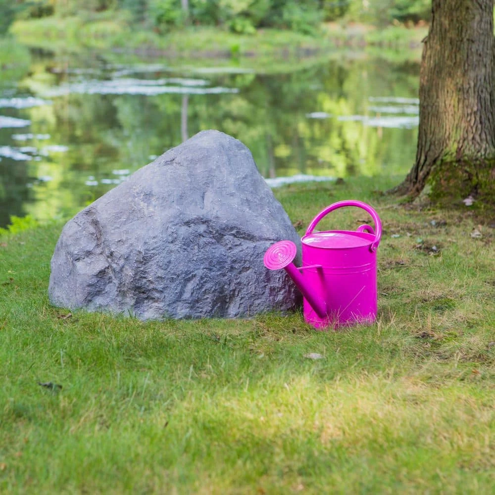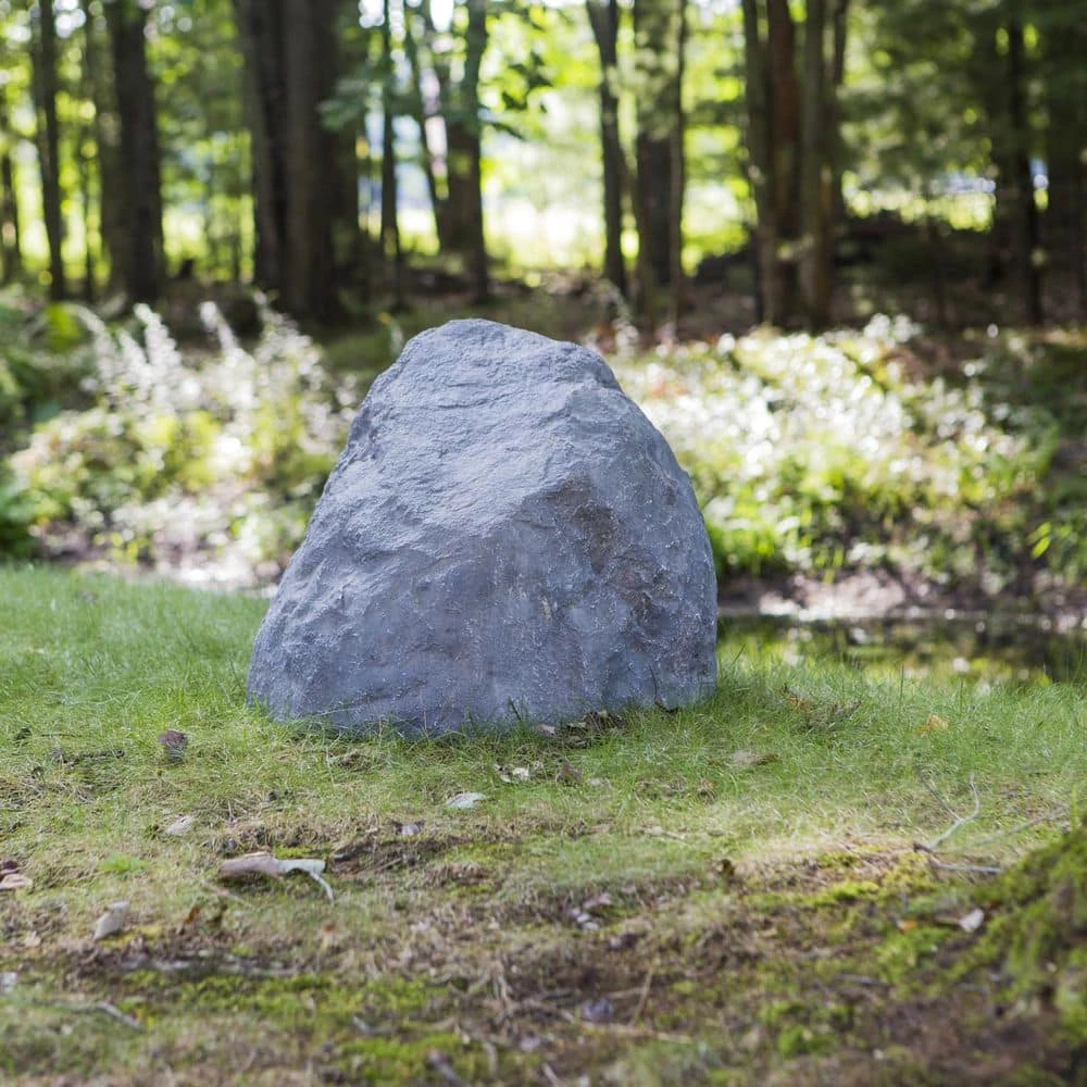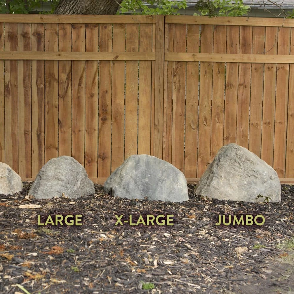 Hide any well pump, sewer cleanout, tree stump, etc. with our Outdoor Essentials® Jumbo Artificial Gray Rock Well Pump Cover. Each one is coated with UV-resistant paint and made of durable fiberglass composite. There’s no need to use a stake; it’s lightweight yet stable. Each rock has an irregular shape and blended color to offer a realistic appearance (shape and color will vary with each rock).