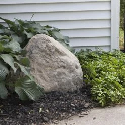 Hide any well pump, sewer cleanout, tree stump, etc. with our Outdoor Essentials® Jumbo Artificial Tan Rock Well Pump Cover. Each one is coated with UV-resistant paint and made of durable fiberglass composite. There’s no need to use a stake; it’s lightweight yet stable. Each rock has an irregular shape and blended color to offer a realistic appearance (shape and color will vary with each rock).