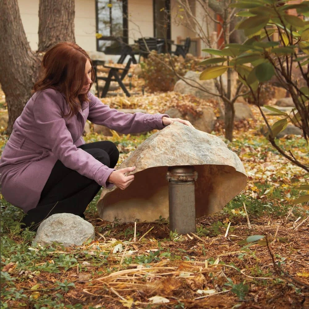 Hide any well pump, sewer cleanout, tree stump, etc. with our Outdoor Essentials® Extra Large Artificial Tan/Gray Rock Well Pump Cover. Each one is coated with UV-resistant paint and made of durable fiberglass composite. There’s no need to use a stake; it’s lightweight yet stable. Each rock has an irregular shape and blended color to offer a realistic appearance (shape and color will vary with each rock).