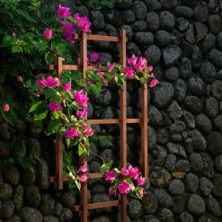Bring life to any outdoor space with our 36 in. Wood Ladder Trellis. At 3 ft. tall, it’s perfectly sized for planters and smaller garden beds. And it’s easy to use. Simply stake it in the dirt to provide support for climbing plants, keep your garden tidy and add a decorative accent. This trellis features a richly-colored cedar tone stain that complements its surroundings.