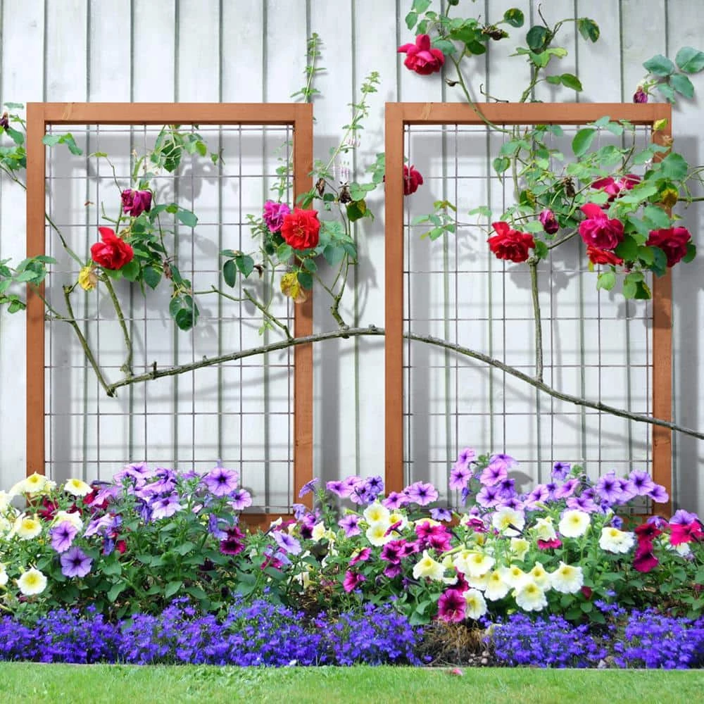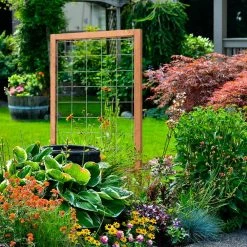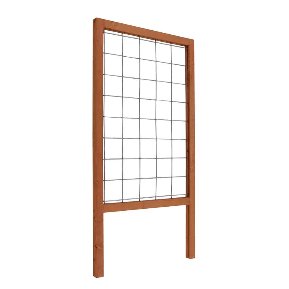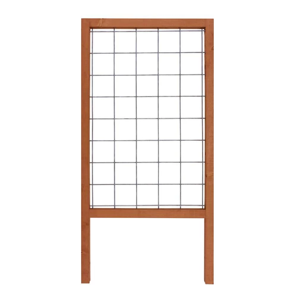 Like the look of mixed materials. Then you’ll love our 48 in. Hog Wire Wood Trellis. The frame is made with cedar-colored wood. The infill is a metal grid. It offers an ideal avenue for climbing roses, plants and vines to grow. Stake it in the ground or attach it to a wall.