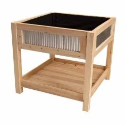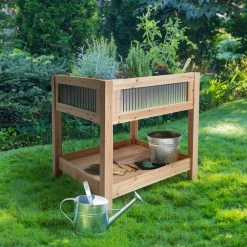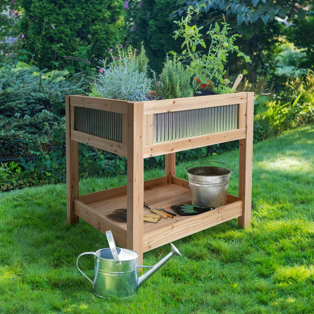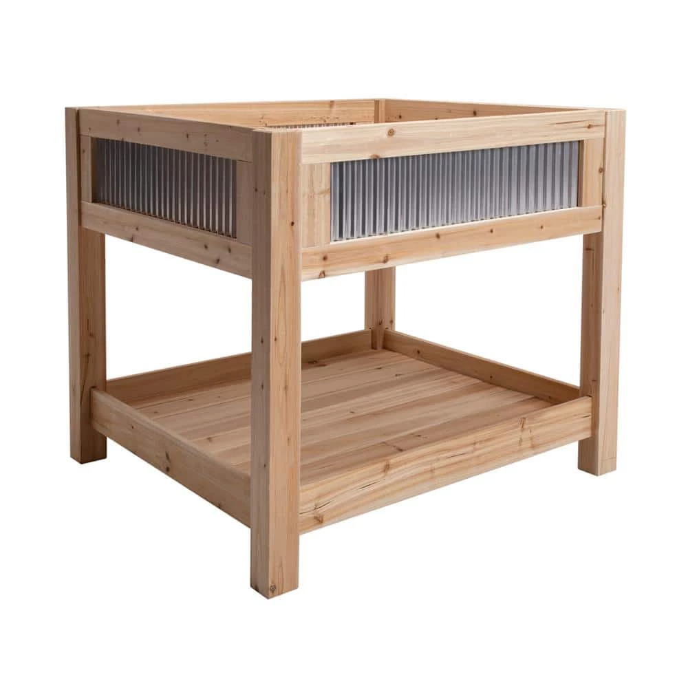 Decorate your outdoor space with the Contemporary 3 ft. x 3 ft. Corrugated Metal and Cedar Elevated Garden Planter with Shelf. Designed with mobility in mind, this elevated planter can be utilized virtually anywhere outdoors. Remove the need for bending with the waist-height elevation. Fill with the soil of your choice and begin your garden immediately. The small size of this elevated planter allows for you to move and rearrange your garden space with ease.