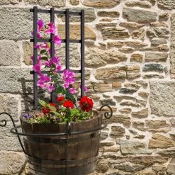 Bring life to any indoor or outdoor space with this Outdoor Essentials Haven 36 in. Black Barrel Trellis. Give your climbing plants room to grow. It’s the perfect way to add vertical space to your garden. Simply push the stakes into the soil and loosely wrap the vines up the trellis. You can use this trellis in a flower pot or garden bed. Made with durable, stained pine for a sleek modern look. Our trellis comes preassembled for easy installation.