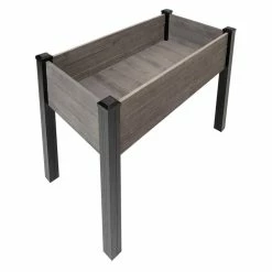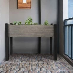 Add planting space to your deck, patio or balcony with our Outdoor Essentials Haven Rustic 2 ft. x 4 ft. Gray Elevated Garden Planter with PVC Legs. The planter is raised off the ground, so you can tend to your plants with out the strain of bending or kneeling. It comes in an easy-to-use kit that can be assembled with no tools. The sides and floor are made with rough-sawn wood and pre-stained gray to resemble rustic barnwood. The legs are made with no rot black PVC. It’s perfect for herbs, flowers, vegetables and more.