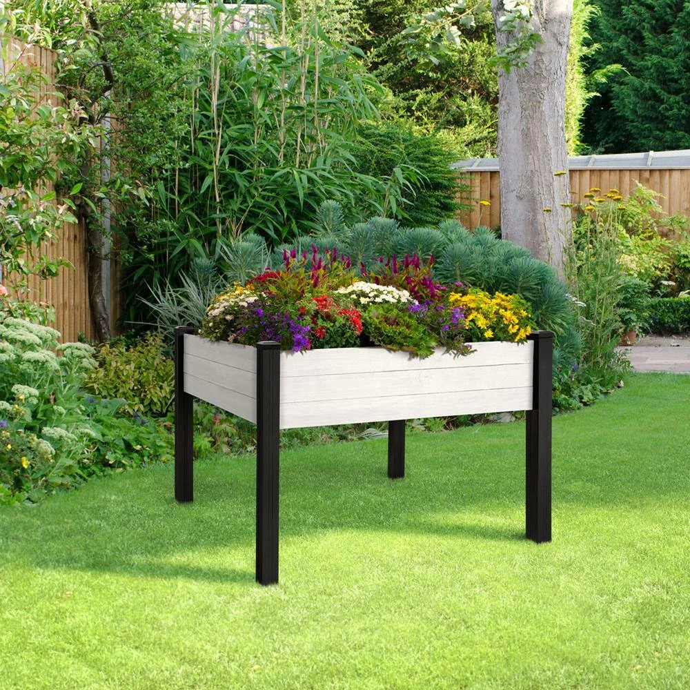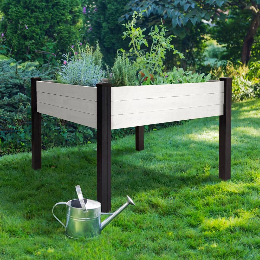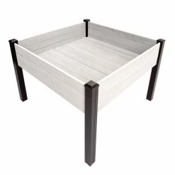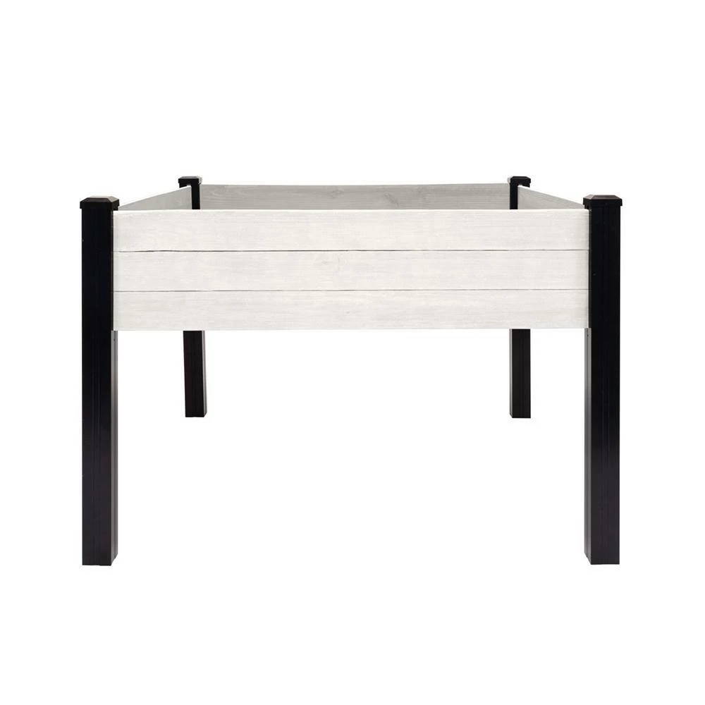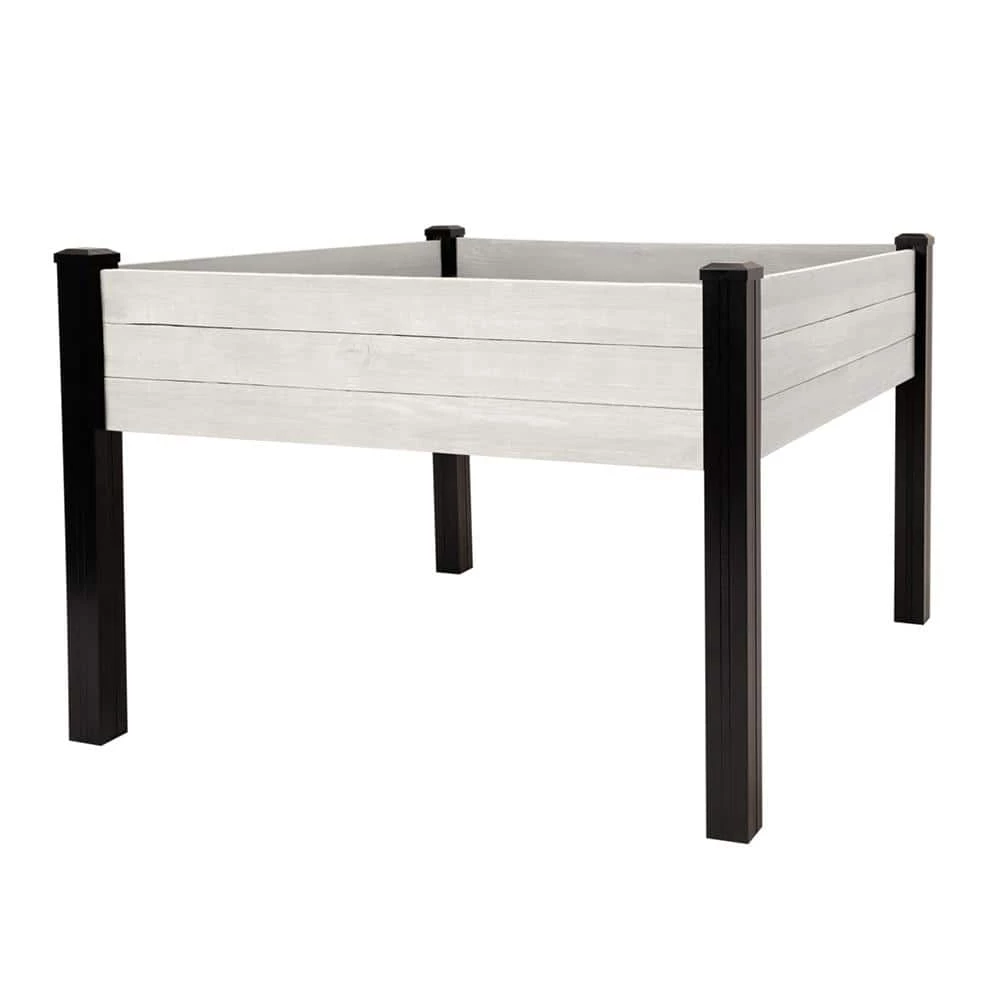 Tend to your garden comfortably with our Haven Rustic 4 ft. x 4 ft. Antique White Elevated Garden Planter. This planter boasts 16 sq. ft. of gardening space raised off the ground so you can care for your plants without the strain of bending or kneeling. The sides and floor of the planter are made of durable, rough-sawn lumber that is pre-stained gray to resemble rustic barnwood. The legs are made of durable, no rot black vinyl. This planter comes in an easy-to-assemble kit that can be assembled with no tools. Place it on any level surface – patio, deck, yard and more. Perfect for growing herbs, plants, flower and vegetables.