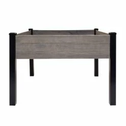 Tend to your garden comfortably with our Haven Rustic 4 ft. x 4 ft. Gray Elevated Garden Planter with vinyl legs. This planter boasts 16 sq. ft. of gardening space raised off the ground so you can care for your plants without the strain of bending or kneeling. The sides and floor of the planter are made of durable, rough-sawn lumber that is pre-stained gray to resemble rustic barnwood. The legs are made of durable, no rot black vinyl. This planter comes in an easy-to-assemble kit that can be assembled with no tools. Place it on any level surface – patio, deck, yard and more. Perfect for growing herbs, plants, flower and vegetables.