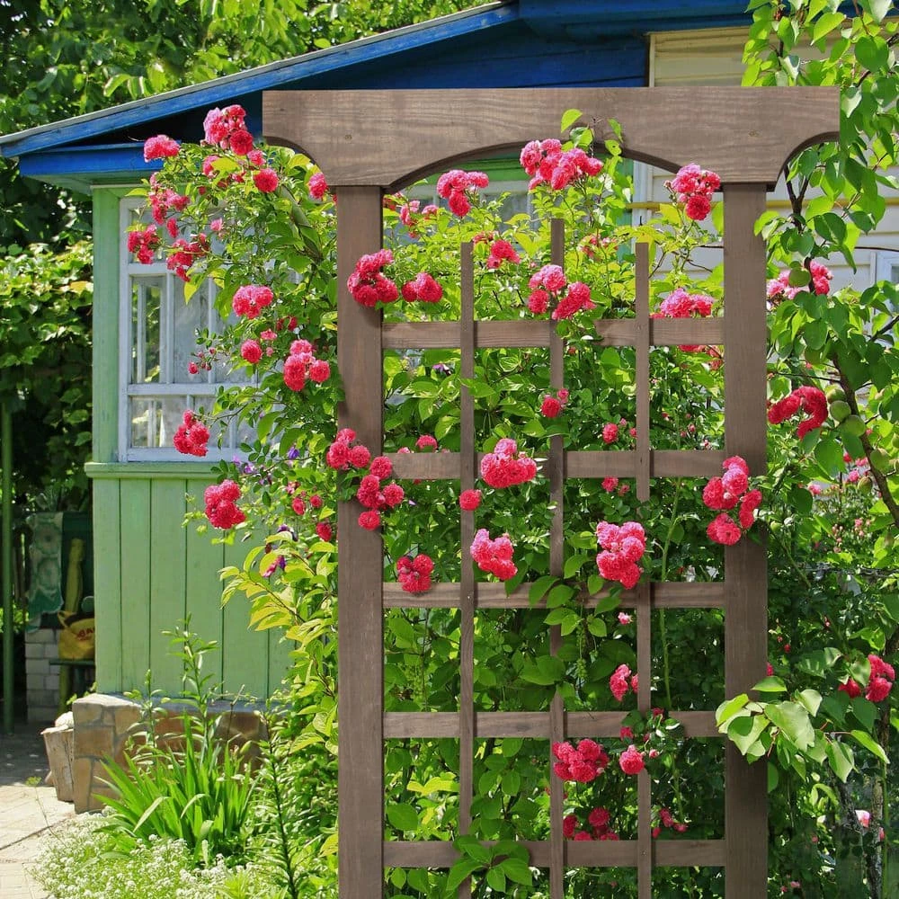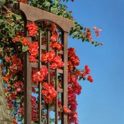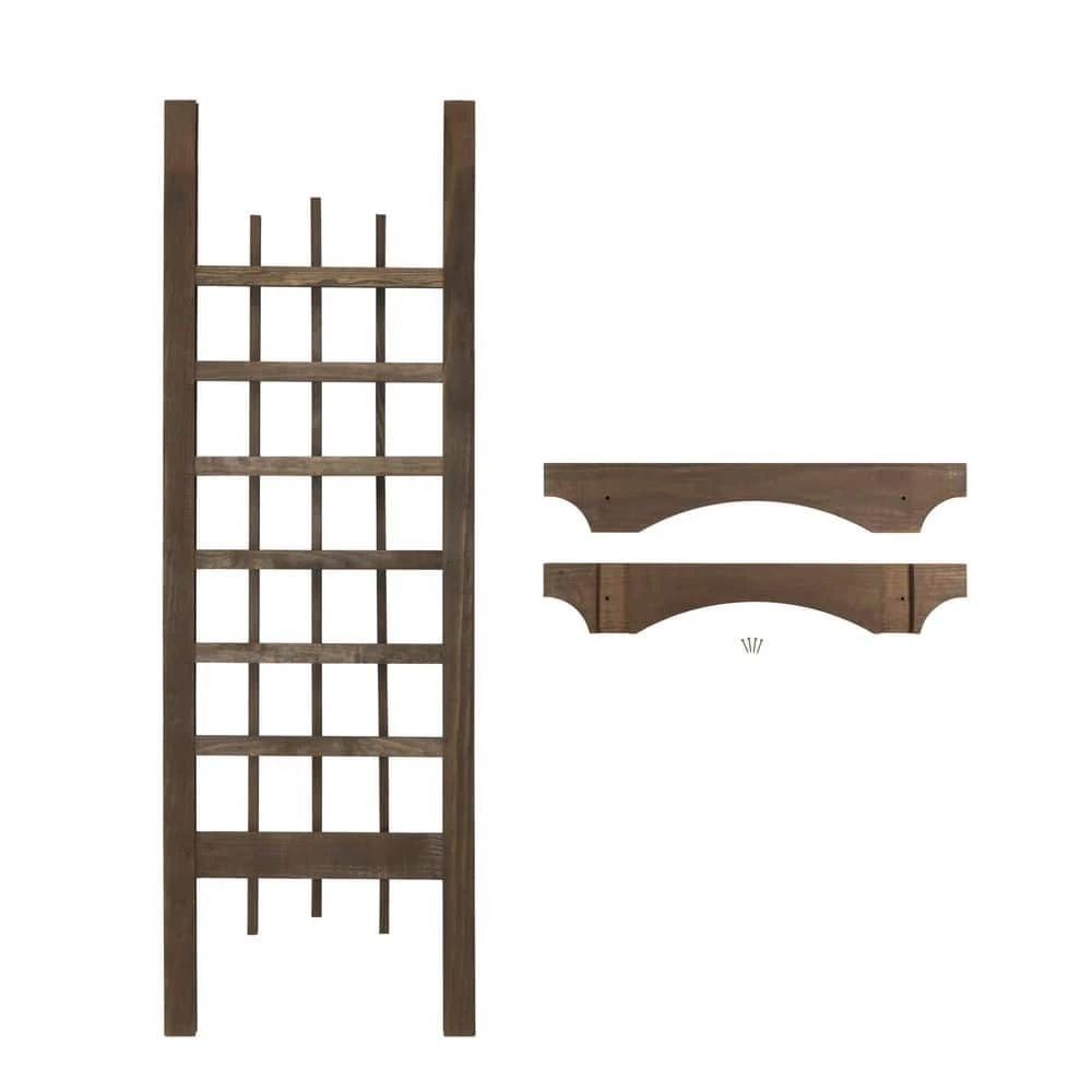 Bring life to your garden space with this Outdoor Essentials Heirloom 72 in. Walnut‐Tone Farmhouse Trellis. Give your climbing plants room to grow by adding vertical space to your garden; simply stake it into the soil, attach it to a fence, and lean it against a wall. For minimal maintenance and long‐lasting performance, it’s color‐treated a walnut‐tone. The trellis comes as an unassembled kit.