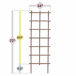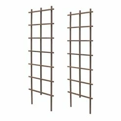 Our Outdoor Essentials Homestead 72 Walnut-Tone Grid Ladder Trellis is great for both indoor and outdoor use. Give your climbing plants room to grow while staying tidy. It’s the perfect way to add vertical space to your garden. Simply push the stakes into the soil and loosely wrap the vines up the trellis. You can use this trellis in a flower pot or garden bed. Our trellis features a walnut-tone color treatment that will complement any gardening space. It comes pre-assembled for easy installation.