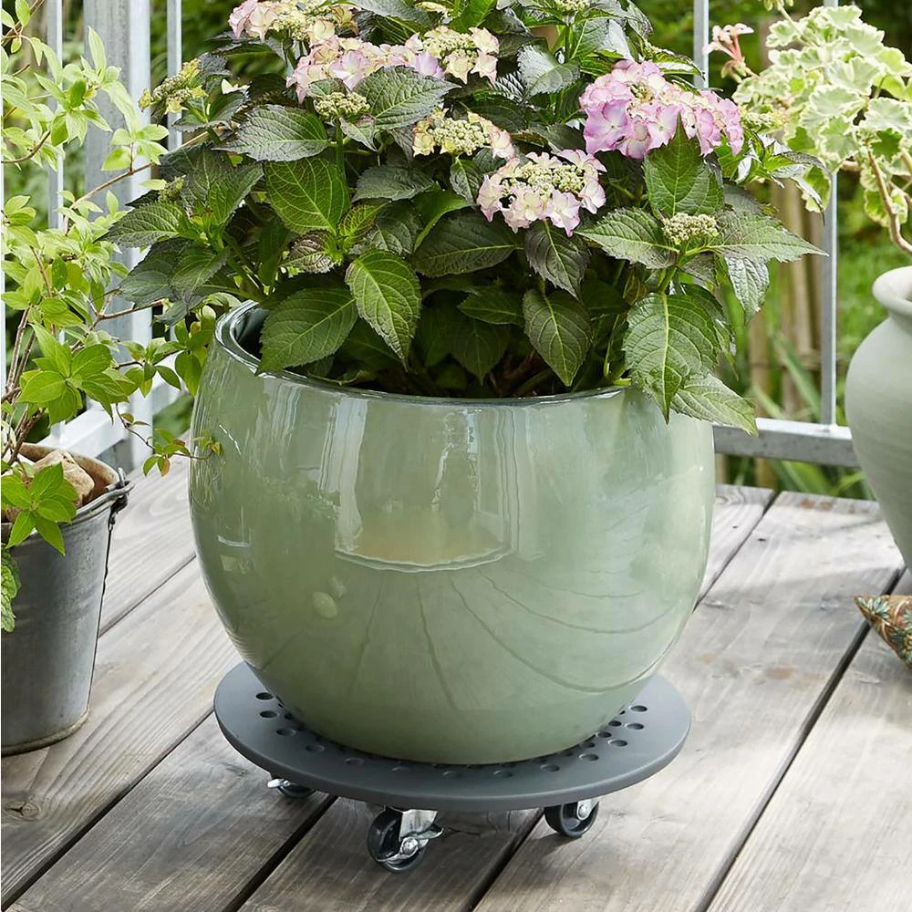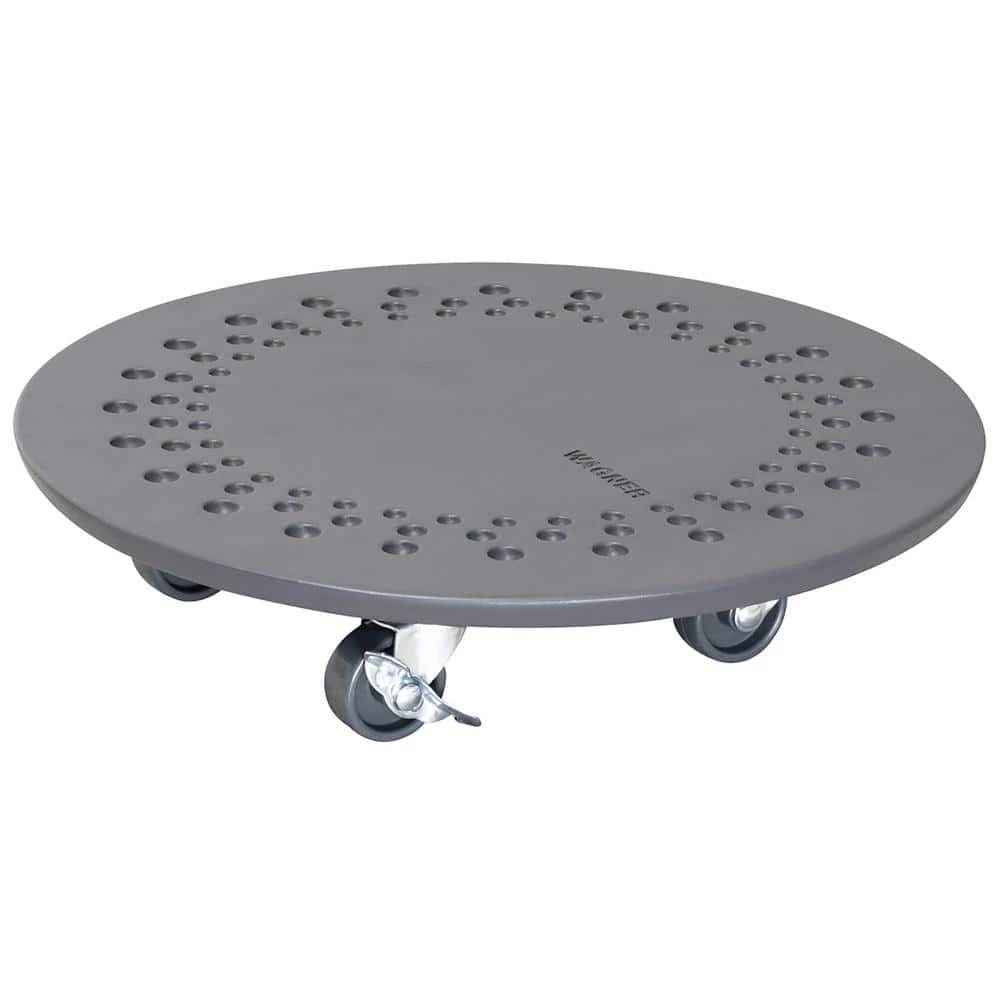 This Wagner plant caddy is stylish with a load surface manufactured from fine concrete in a traditional mold-cast process, then embellished with decorative dot patterns. For maximum security, the screw threads for the mounting of the castors have been embedded into the mold during the manufacturing process. 4 heavy-duty equipment castors provide the best mobility on all soft floors.